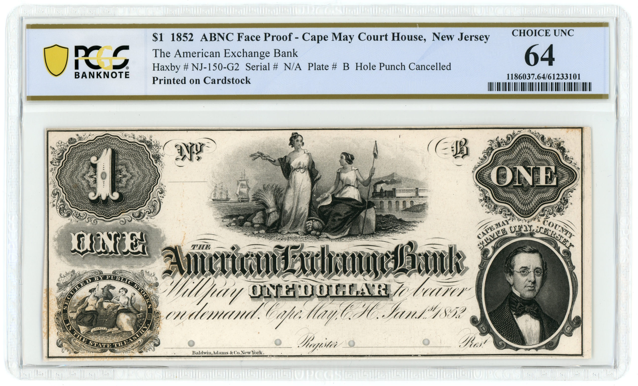 1852 $1 American Exchange Bank Cape May NJ PCGS 64 (L6402)