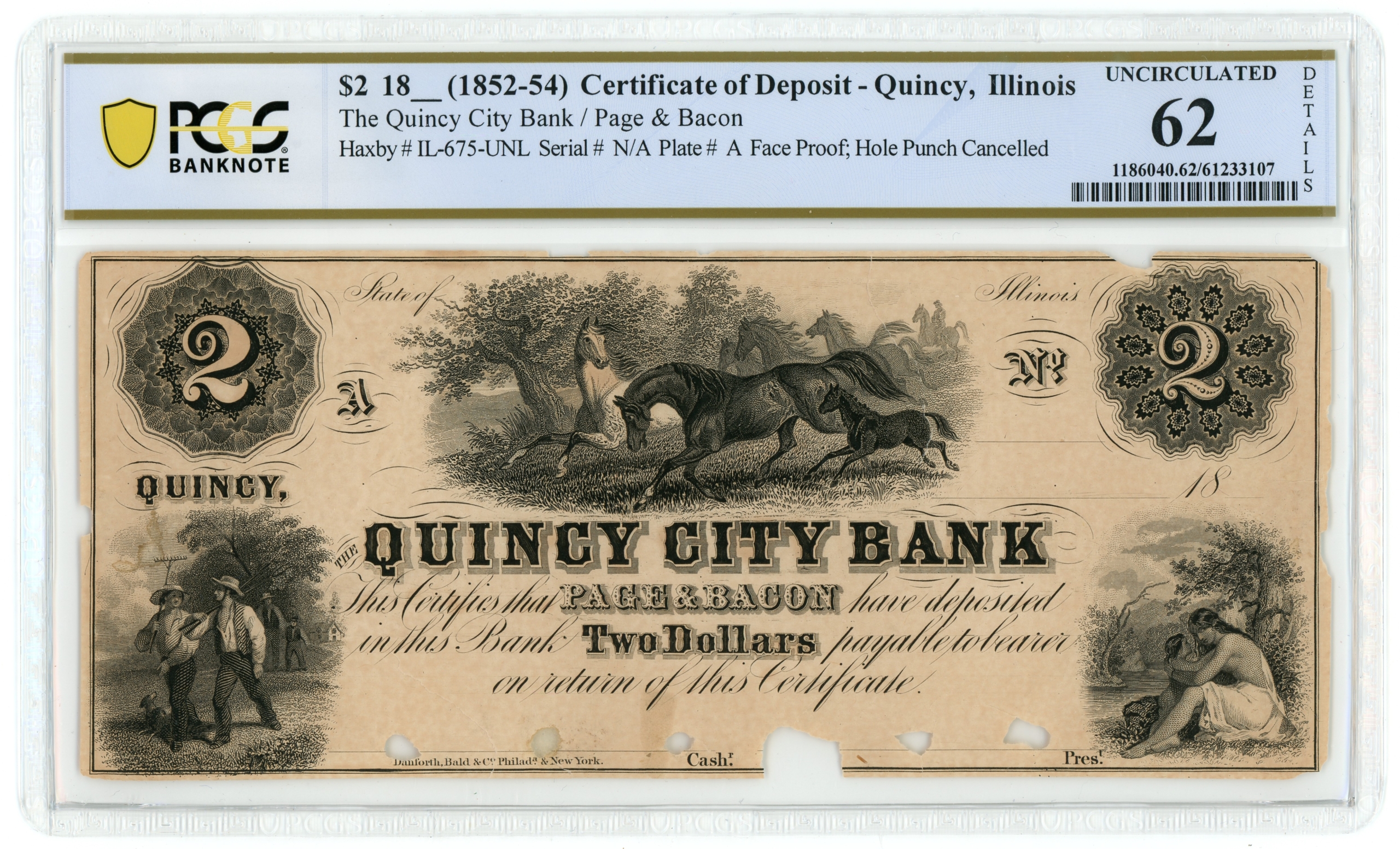 18XX $2 Certificate of Deposit Quincy IL PCGS UNC62 (L6405)