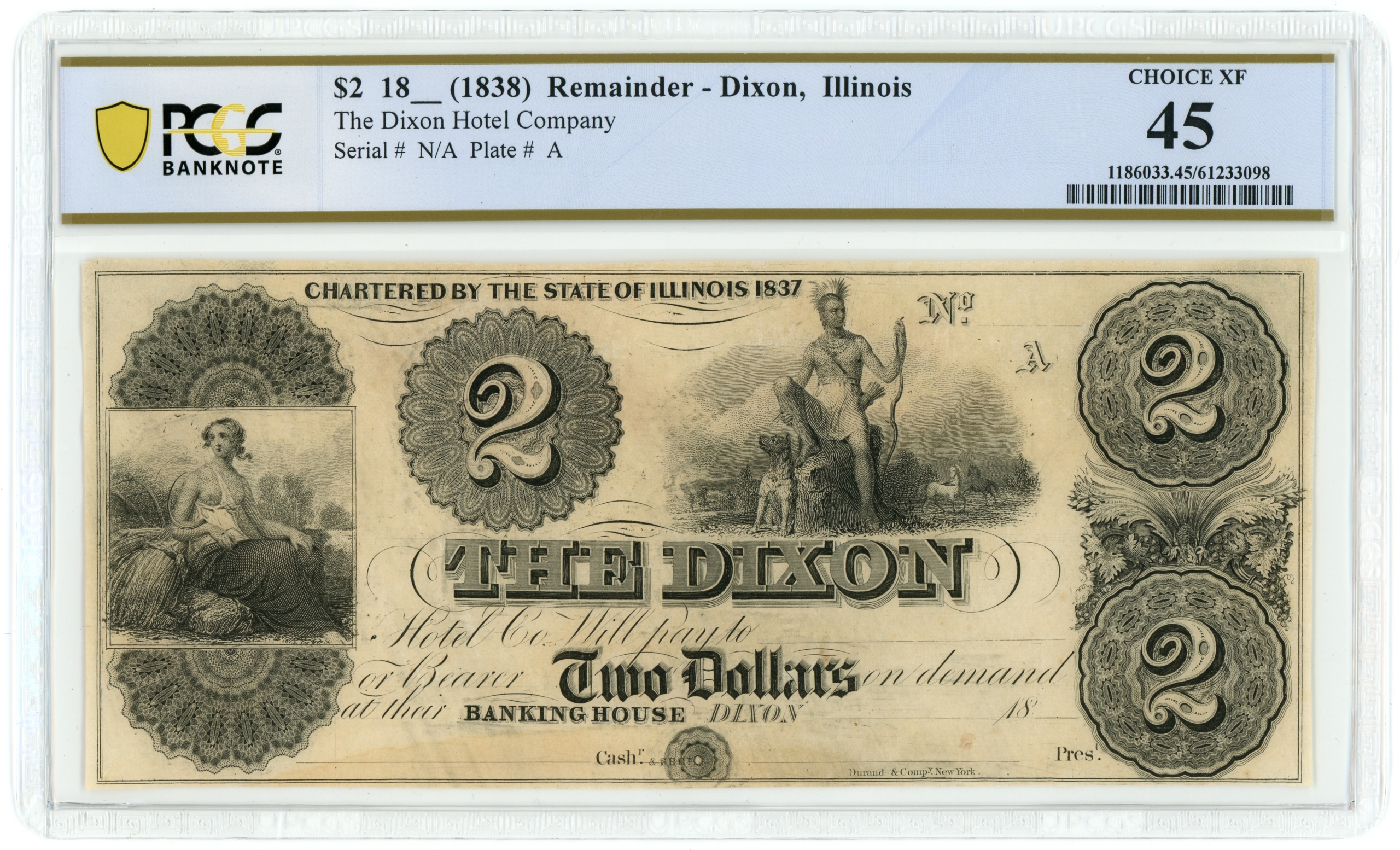 1838 $2 The Dixon Hotel CO. Dixon IL PCGS XF45 (L6408)