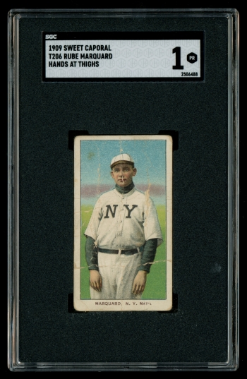1909 T206 Sweet Caporal 150 Rube Marquard Hands at Thighs NY Giants HOF SGC 1 PR