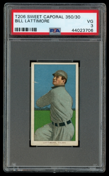 T206 Sweet Caporal 350 Bill Lattimore Toledo Mud Hens PSA 3 VG (66267)