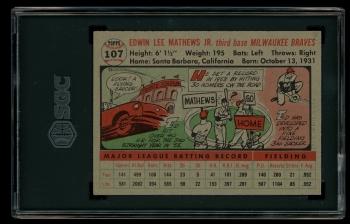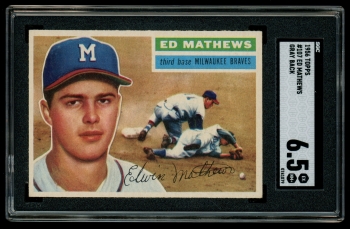 1956 Topps #107 Ed Mathews Milwaukee Braves HOF SGC 6.5 EX-MT+ GRAY BACK (66132)