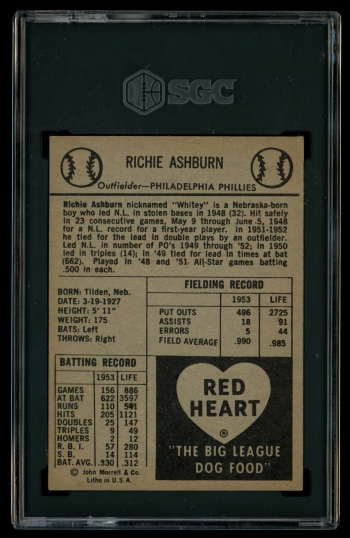 1954 Red Heart Dog Food Richie Ashburn Philadelphia Phillies Card HOF SGC 5 EX