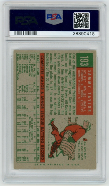 1959 Topps #193 Sammy Taylor Chicago Cubs Card PSA EX 5 (64529)