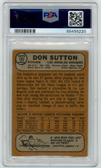1968 Topps Venezuela #103 Don Sutton LA Dodgers HOF PSA 4 VG-EX POP 2+7!