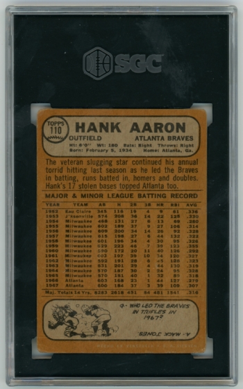 1968 Topps Venezuela #110 Hank Aaron Atlanta Braves HOF SGC 2 GD