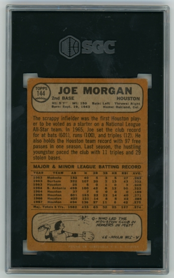 1968 Topps Venezuela #144 Joe Morgan Houston Astros HOF SGC 3 VG POP 1+1!