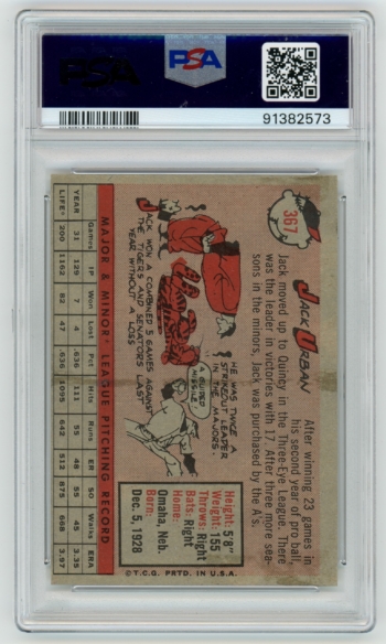 1958 Topps #367 Jack Urban Kansas City Athletics Card PSA 5 EX (64818)