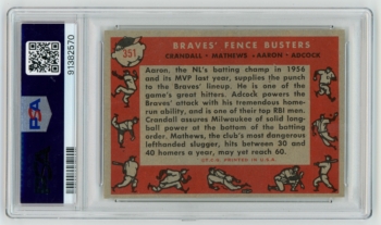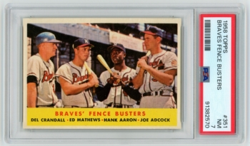 1958 Topps #351 Braves Fence Busters – Crandall/Mathews/Aaron/Adcock – PSA 7 NM