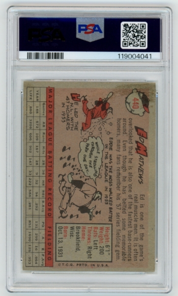 1958 Topps #440 Ed Mathews Milwaukee Braves HOF PSA 4 VG-EX (65111)