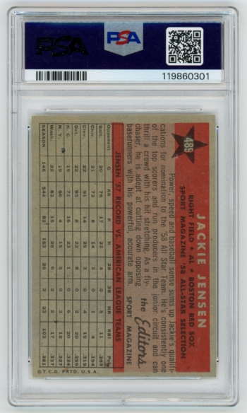 1958 Topps #489 Jackie Jensen AS Boston Red Sox PSA 8.5 NM-MT+ POP 3+12 (65133)