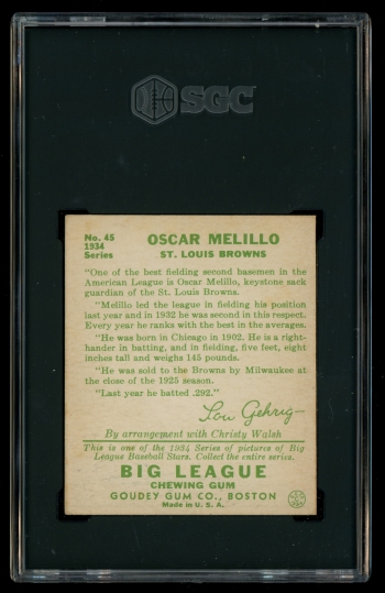 1934 Goudey #45 Oscar Melillo St. Louis Browns Card SGC 6 EX-MT POP 4+12!