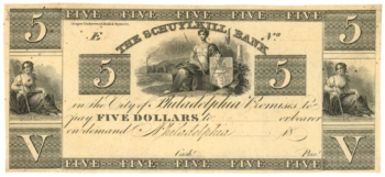 18XX Schuylkill Bank, Philadelphia, Pennsylvania $5 Obsolete Note (D59645)