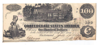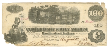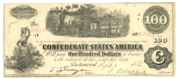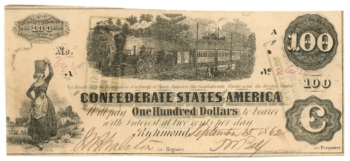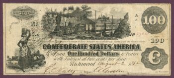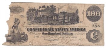 T-39 1862 Confederate States of America $100 Note – Train Vignette (65156)