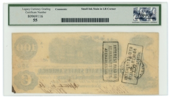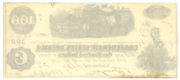 T-40 1862 CSA $100 Note – BC Pressley Assistant CSA Treasurer Stamp 65587