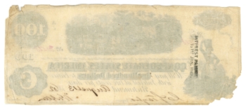 T-39 PF-5 CR-290 1862 Confederate States of America $100 Note No.16032 (60732)