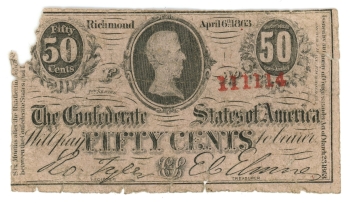 T-63 PF-1 CR-486 1863 Confederate States of America 50c Note R8 (63589)