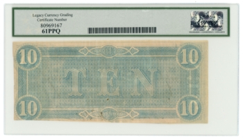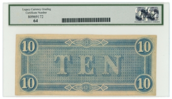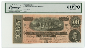 T-68 1864 Confederate States of America CSA $10 PF-39 CR-UNL LCG UNC 61PPQ 65425
