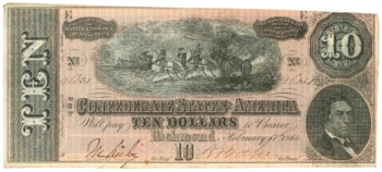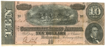 T-68 PF-44 CR-552 Confederate States $10 CSA Note (L2401)