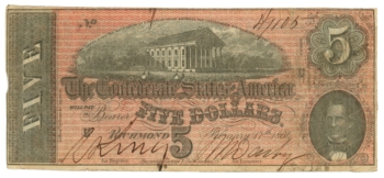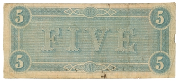 T-69 1864 Confederate States of America CSA $5 Note PF-1 CR-558 (64874)