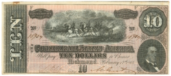 T-68 PF-44 CR-552 Confederate States $10 CSA Note (L2401)
