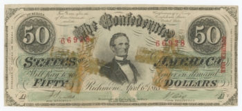 T-57 PF-1 CR-406 1863 Confederate States of America $50 Note No.3686 (58028)