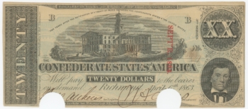 T-58 1863 Confederate States of America CSA $20 Note PF-28 CR-427 (64161)