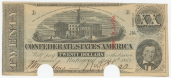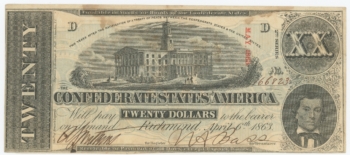 T-58 1863 Confederate States of America CSA $20 Note PF-29 CR-428 (64162)