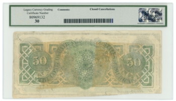 T-57 1863 Confederate States of America CSA $50 PF-6 CR-411 R9 LCG VF30 (65296)