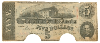 T-60 1863 Confederate States of America CSA $5 Note PF-4 CR-450 (65020)