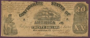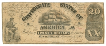 T-20 PF-5 Cr-141 1861 Confederate States of America $20 Note No.130455 – (05813)