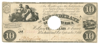 T-28 1861 Confederate States of America CSA $10 Note PF-9 CR-236 (65006)