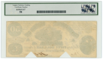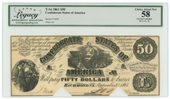 T-14 1861 Confederate States of America CSA $50 Note PF-9 CR-78 LCG AU58 (65260)