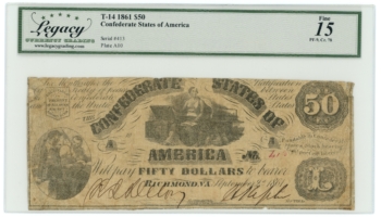 T-14 1861 Confederate States of America $50 Note PF-9 CR-78 R12 LCG F15 (65261)