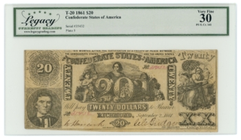 T-20 1861 Confederate States of America CSA $20 PF-5 CR-141 LCG VF30 (65263)