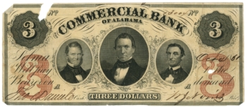 1861 Commercial Bank of Alabama, Selma, AL $3 Obsolete Note No.13004 (62689)