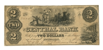 1861 Central Bank of Alabama Montgomery AL $2 Obsolete R231-6 (64811)