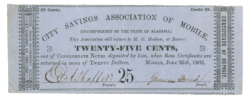 1862 City Savings Association of Mobile Alabama AL 25c Scrip R189-3 R6 (65435)