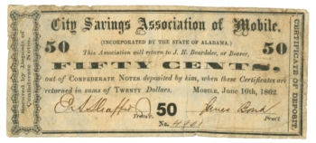 1862 City Savings Association of Mobile Alabama AL 50c Scrip R189-4 R7 (65434)