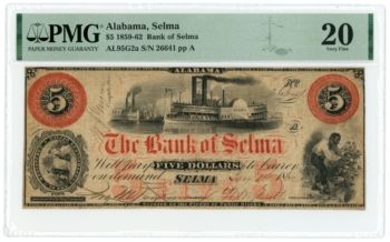 1862 Bank of Selma Alabama AL $5 Obsolete Note PMG VF20 (65579)