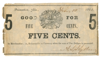 1862 AL Hyder Princeton Alabama AL 5c Obsolete Scrip R281-1/8 R6 (65630)