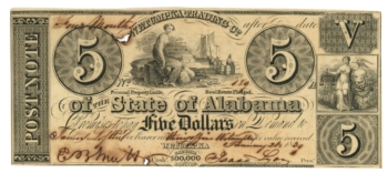 1839 Wetumpka Trading Company Wetumpka Alabama AL $5 Post Note (65762)