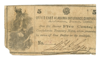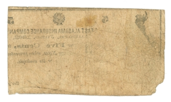 1862 East Alabama Insurance Co Auburn Alabama AL 5c Obsolete R15-UNL (65178)
