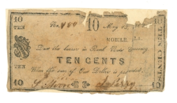 1862 Moore & Perry Mobile Alabama AL 10c Obsolete Scrip R205-1 R7 (65235)
