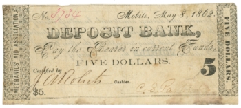 1862 Mobile Alabama Mechanics Aid Association Deposit Bank $5 AL (L4530)