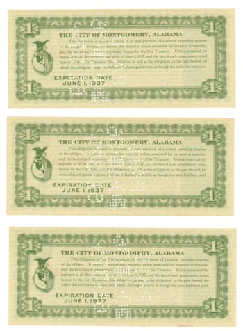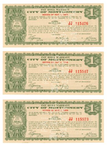 1936 City of Montgomery $1 Pay Warrants, Montgomery, AL – 5 Notes Avail. (59083)