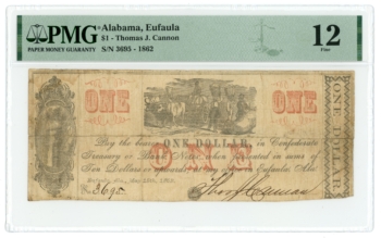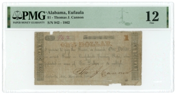 1862 Thomas J Cannon Eufaula Alabama AL $1 Obsolete Scrip R66-2 R7 PMG F12
