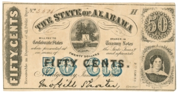 1863 State of Alabama, Montgomery, AL 50c Obsolete Note No.3504 CR46 (62682)