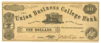 1867 Union Business College Bank San Francisco CA $10 College Currency (65755OZ)