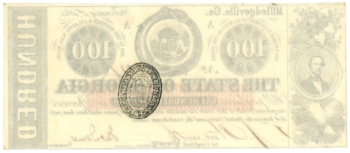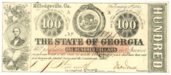 1863 State of Georgia Milledgeville $100 GA (L2957)